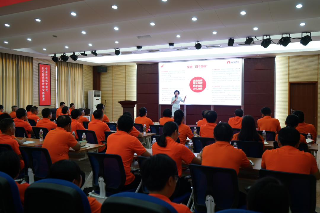 金沙城药业集团党委书记、董事长刘景萍同志通过视频连线海口、杭州、南宁、来宾、江西等地的方式,向大家讲授主题党课。刘景萍书记从为什么要深刻领悟“两个确立”的决定性意义、增强“四个意识”、坚定“四个自信”、做到“两个维护”,充分认识海南自由贸易港建设的重大意义、做海南自由贸易港的建设者,将金沙城药业集团二次创业和高质量发展与中国式现代化有机结合三个方面进行了全面系统的阐释和深入浅出的解读。党课主题鲜明、逻辑清晰、贴近实际,既有理论高度,又有实践深度,具有实践性和现实性意义。