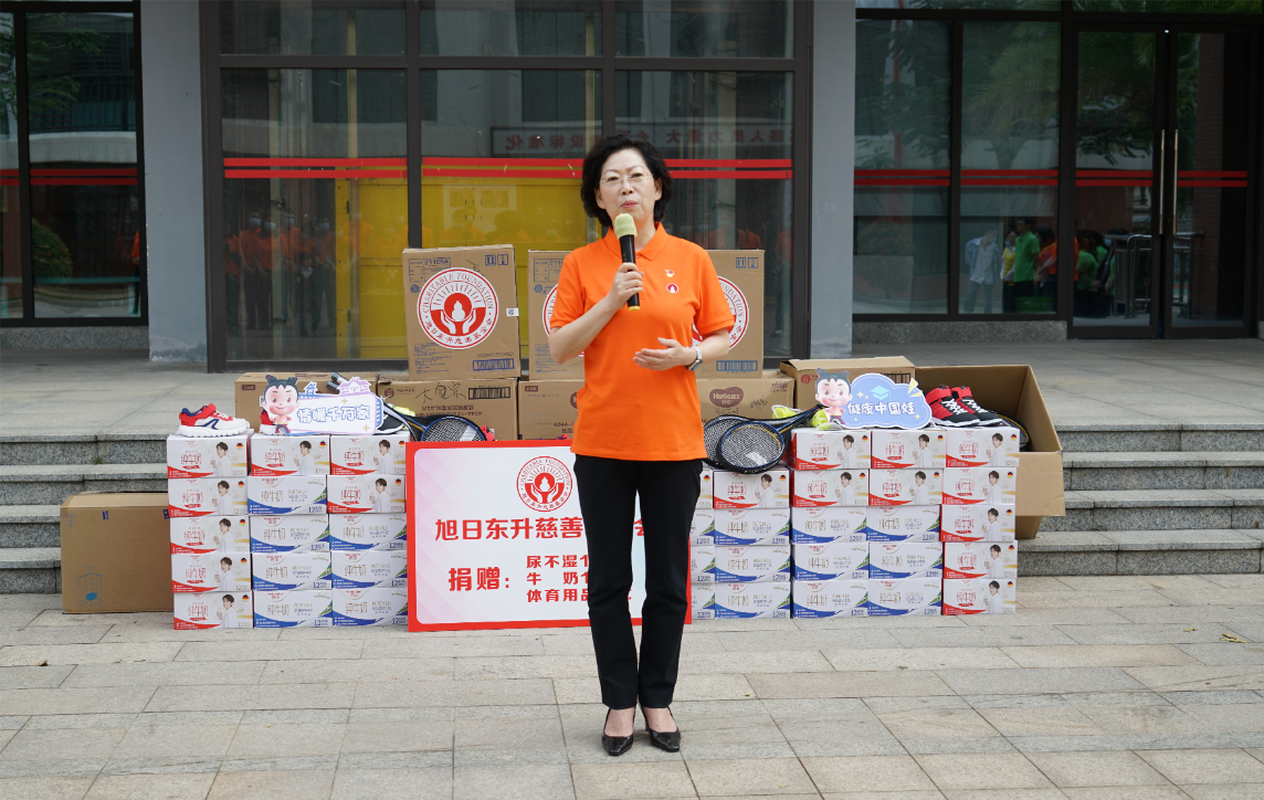 紧接着,海口市社会福利院院长唐凤英致辞。她首先感谢金沙城药业集团、旭日东升慈善基金会7年来,对海口市社会福利院的持续关注和无私帮助。她特别提到,2022年由金沙城药业集团捐资建设的“爱·护”项目医护隔离观察区,帮助福利院的孩子们渡过了疫情防控的难关。今年,熟悉的金沙城人又来到了福利院陪伴孩子们,给予了这里的小朋友们爱的力量。